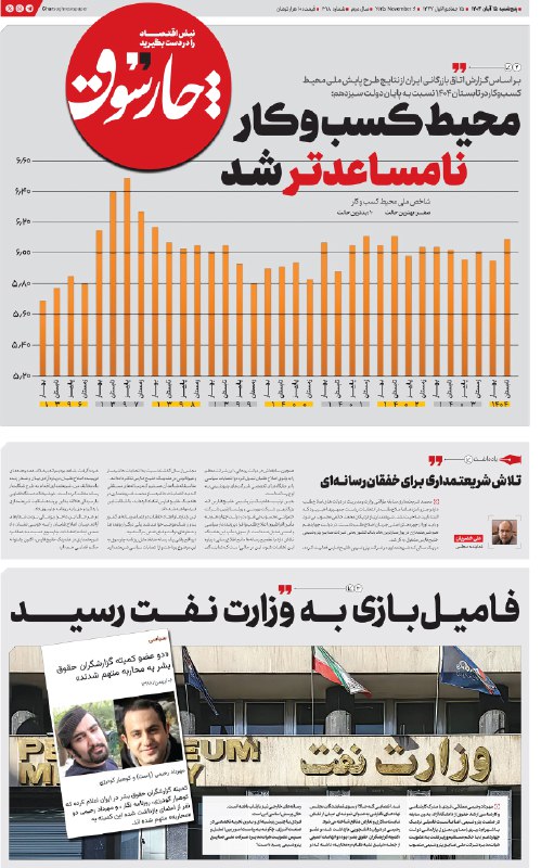 روزنامه چارسوق: بر اساس گزارش اتاق بازرگانی از نتایج پایش ملی محیط کسبوکار ایران در تابستان ۱۴۰۴، عدد شاخص ملی محیط کسبوکار در این فصل به ۶.۰۹ (نمره بدترین ارزیابی ۱۰ است) رسیده که نامساعدتر از وضعیت این شاخص در فصل پایانی دولت سیزدهم (تابستان ۱۴۰۳ با نمره ۶.۰۲) بوده است.