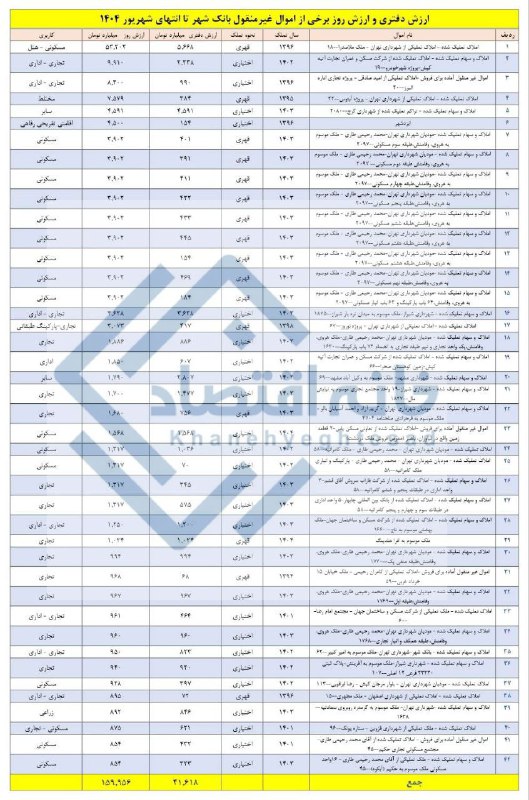 قابل ذکر است اغلب این املاک، املاک تملیکی بوده که یا به صورت قهری و یا به صورت اختیاری بانک آنها را به تملک خود درآورده است.