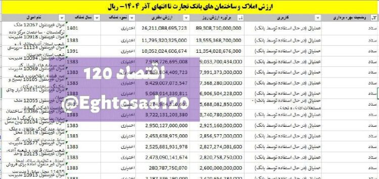به گزارش «اقتصاد ۱۲۰» براساس اطلاعات ارائه شده از سوی بانک تجارت، ارزش کل اموال غیرمنقول شامل ملک و زمین این بانک (اعم از ساختمانهای ستادی، شعب و سایر ساختمانها) تا انتهای آذرماه حدود ۱۹۴ همت بوده که از این مقدار، نزدیک به ۱۱۲ همت ارزش شعب بانک، ۲۰ همت ارزش ساختمانهای ستادی و ۶۲ همت نیز مربوط به سایر املاک است.