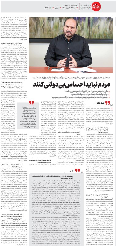 روزنامه چارسوق امروز با محسن منصوری، معاون اجرایی شهید رئیسی گفتگوی تفصیلی انجام داده است. منصوری در این گفتگو با انتقاد از عملکرد یکساله دولت چهاردهم نقدهای جدی به تیم اقتصادی دولت وارد کرده است. بخشهایی از این گفتگو در زیر آمده است: