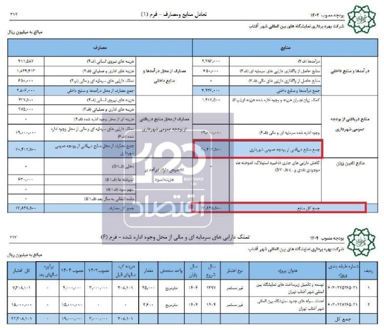 بررسی جزییات بودجه این شرکت نشان میدهد از کل بودجه ۲ هزار و ۳۸۵ میلیارد تومانی آن، حدود ۴۸۴ میلیارد تومان مربوط به هزینههای جاری و عمومی شرکت و ۱۹۰۰ میلیارد تومان مابقی مربوط به توسعه و تکمیل زیرساختهای نمایشگاه ازجمله احداث سولههای جدید و امثال آن است.