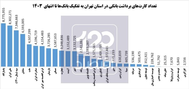 به گزارش «اقتصاد ۱۲۰» براساس دادههای بانک مرکزی ایران، مردم استان تهران تا انتهای سال گذشته ۷۳/۲ میلیون کارت برداشت بانکی داشته است. همچنین تعداد کارت هدیه دریافتی تهرانیها از بانکها نیز به ۲۸ میلیون فقره رسیده است.