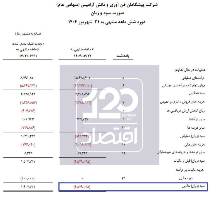 به گزارش «اقتصاد ۱۲۰» براساس صورت مالی ۶ماهه نخست سال ۱۴۰۴، شرکت پیشگامان فنآوری و دانش آرامیس با برند تپسی درحالی در نیمه نخست درآمد عملیاتی ۱۵۴۸ میلیارد تومانی کسب کرده و درآمد عملیاتی آن رشد ۷۶ درضدی نسبت به مدت مشابه سال گذشته داشته که در سال جاری زیان خالص ۴۵۳ میلیارد تومانی را تجربه کرده است.