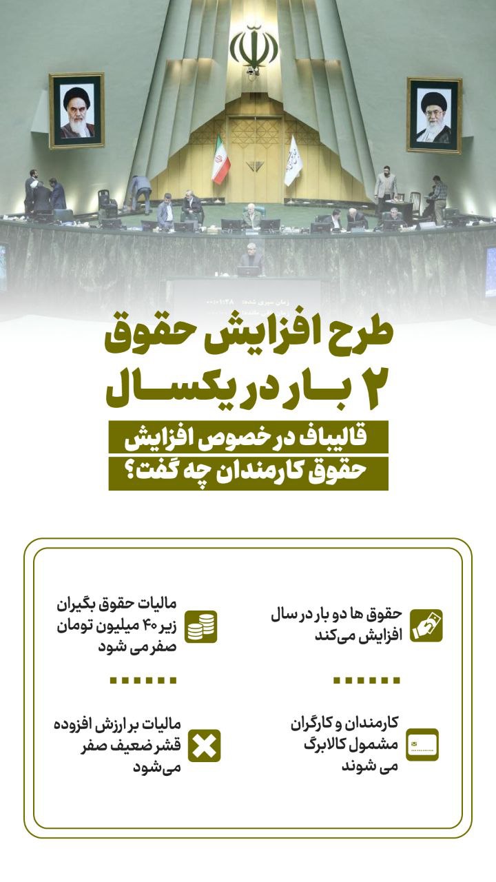 رئیس مجلس ظهر امروز در جریان بررسی بودجه ۱۴۰۵ اعلام کرد که مجلس پیگیر آن است تا در سال آینده، حقوقها دو بار در یکسال افزایش یابد.