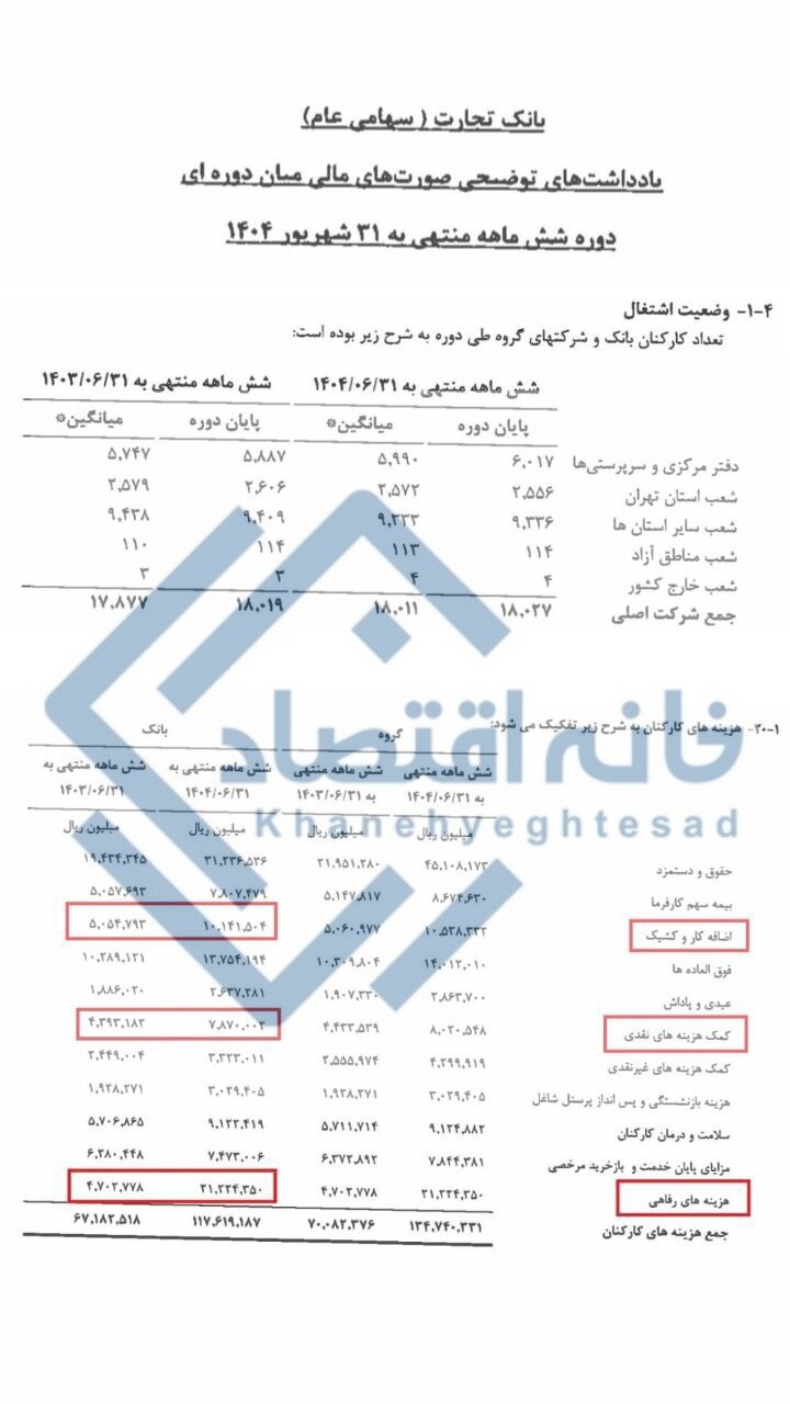 به گزارش «خانه اقتصاد»، براساس صورت مالی ۶ماهه نخست ۱۴۰۴، بانک تجارت در نیمه نخست سال جاری بهطور قابلتوجهی هزینههای پرسنلی خود را افزایش داده است.