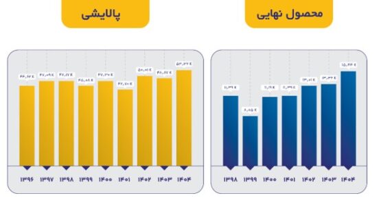 در بخش تولید نیز، رکورد تولید پالایشی و تولید فینیش و بستهبندی در مهرماه ۱۴۰۴ نسبت به مدت مشابه در سالهای گذشته شکسته شد.طبق داده های مقایسهای در مهر ماه سال ۱۴۰۳ میزان تولید پالایشی ۴۸.۸۷ هزار مترمکعب بوده که در سال۱۴۰۴ به ۵۳.۳۲ هزار مترمکعب با رشد ۹.۱ درصدی در تولید پالایشی نسبت به سال قبل رسیده است.