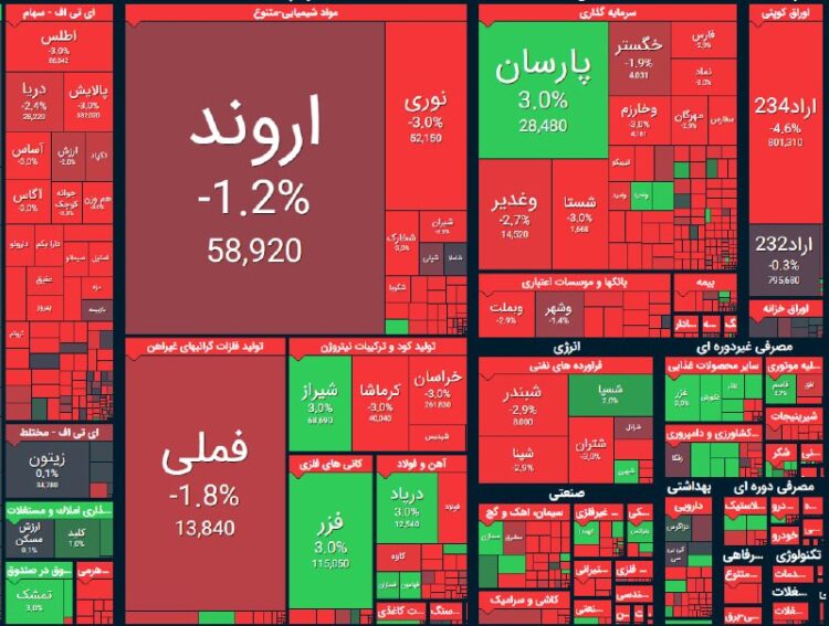 شاخص کل بورس با ریزش ۱۰۳ هزار واحدی در پایان معاملات امروز به ۴ میلیون و ۰۱۱ هزار واحد رسید.