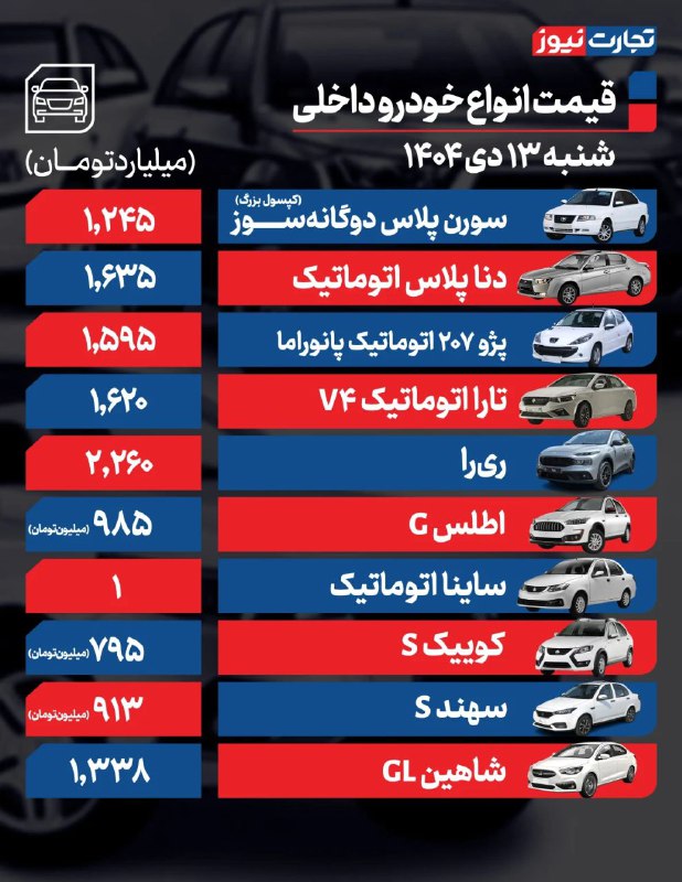 ریرا بیشترین تغییرات قیمتی میان خودروهای داخلی را تجربه کرد.
