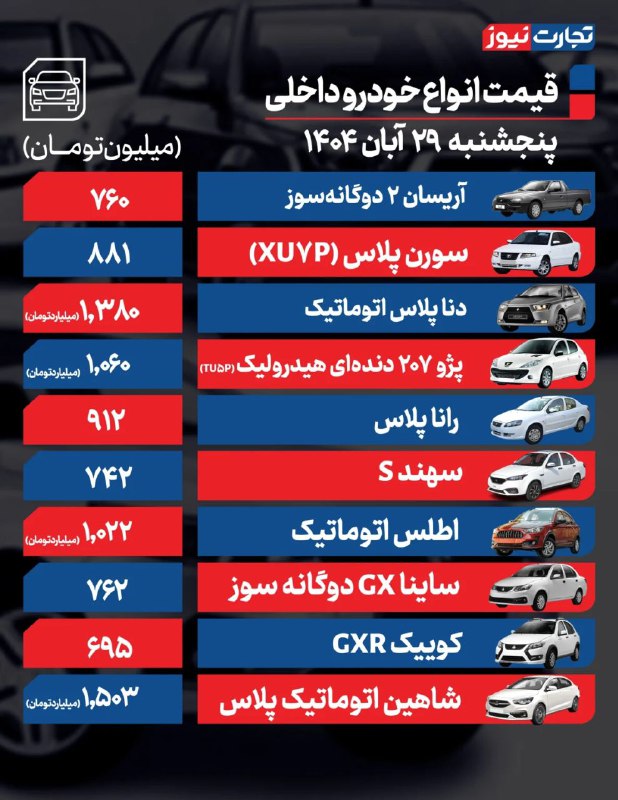 از طرف دیگر، تیگو۸ هیبرید ۱۰ میلیون تومان ارزان شد و به نرخ معاملاتی چهار میلیارد و ۲۵ میلیون تومان رسید.