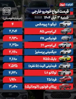 بر همین مبنا، این کراساوور مونتاژی ۲۳۰ میلیون تومان گران شده است تا امروز با نرخ چهار میلیارد و ۶۳۰ میلیون تومان خرید و فروش شود.
