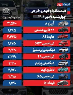 قیمت خودرو امروز ۹ مهر ۱۴۰۴ / فرمان بازار خودرو بلاتکلیف ماند