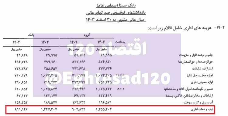 به گزارش «اقتصاد ۱۲۰» طبق صورت مالی بانک سینا، این بانک طی سال گذشته رقمی نزدیک به ۱۲۵ میلیارد تومان تحت عنوان ایاب و ذهاب هزینه کرده است.