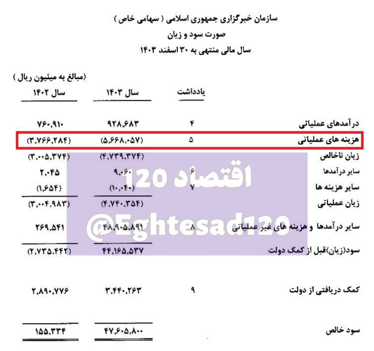 به گزارش «اقتصاد ۱۲۰» براساس صورت مالی خبرگزاری جمهوری اسلامی، طی سال ۱۴۰۳ خبرگزاری دولت ۵۶۷ میلیارد تومان هزینه کرده که در مقایسه با هزینه ۳۷۷ میلیارد تومانی سال ۱۴۰۲ رشد ۵۰/۵ درصدی داشته است.