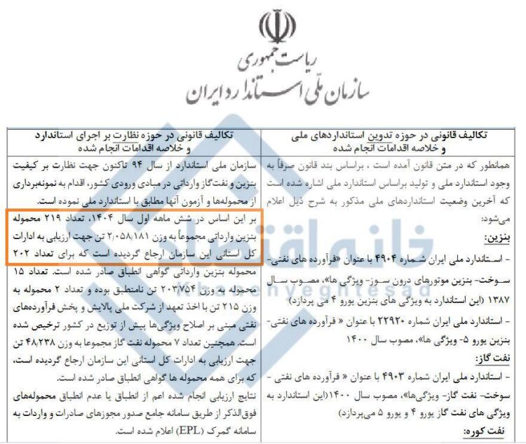 به گزارش «خانه اقتصاد» براساس دادههای سازمان استاندارد ایران، در نیمه نخست سال جاری جمعا ۲ میلیون تن بنزین وارداتی معادل ۲ میلیارد و ۷۹۳ میلیون لیتر برای دریافت تائیدیههای استاندارد تحویل این سازمان شده است.