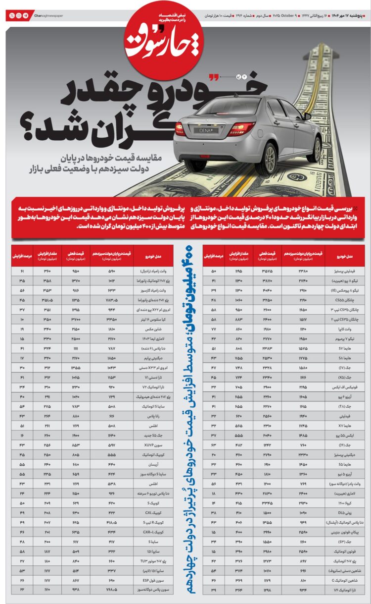 مقایسه قیمت انواع خودروهای پرفروش تولید داخل، مونتاژی و وارداتی در روزهای اخیر، نسبت به پایان دولت سیزدهم نشان میدهد قیمت این خودروها به طور متوسط بیش از ۴۰۰ میلیون تومان گران شده است.