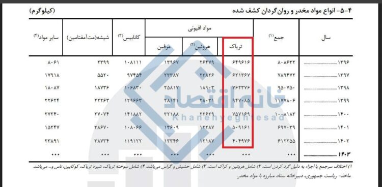 گرچه آمار سال ۱۴۰۳ هنوز منتشر نشده، اما بهنظر میرسد با کاهش ترانزیت مواد مخدر از افغانستان به ایران، میزان کشفیات تریاک نیز بهطور قابلتوجهی کاهش یافته است.