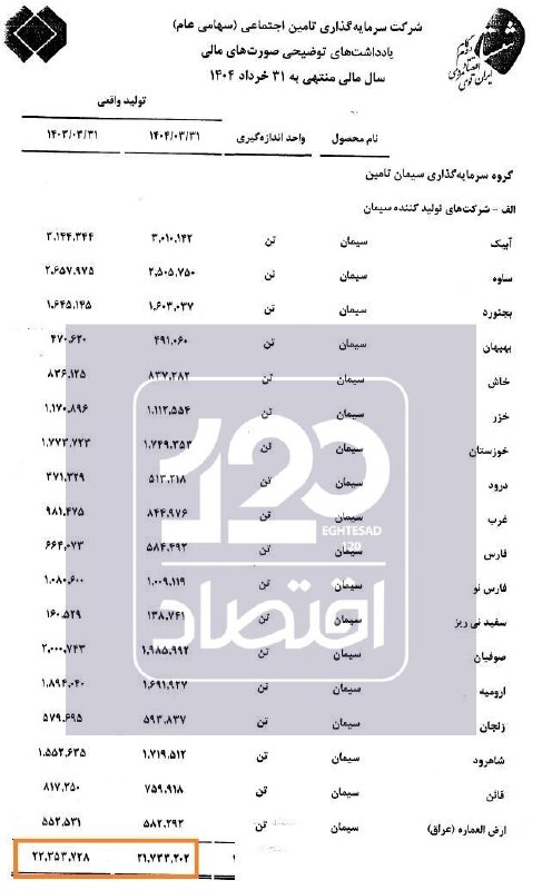 به گزارش «اقتصاد ۱۲۰» براساس صورت مالی گروه شستا، تولید سیمان این گروه در سال ۱۴۰۲ (سال منتهی به ۳۱ خرداد ۱۴۰۳) حدود ۲۲ میلیون و ۳۵۴ هزار تن بوده که با کاهش ۶۲۰ هزار تنی (۲/۷ درصدی) به ۲۱ میلیون و ۷۳۳ هزار تن در سال ۱۴۰۳ (سال مالی منتهی به خرداد ۱۴۰۴) رسیده است.
