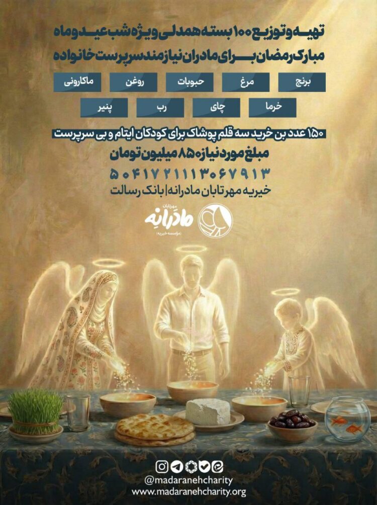 خیریه مهر تابان مادرانه نزد بانک رسالت واریز نمایید.